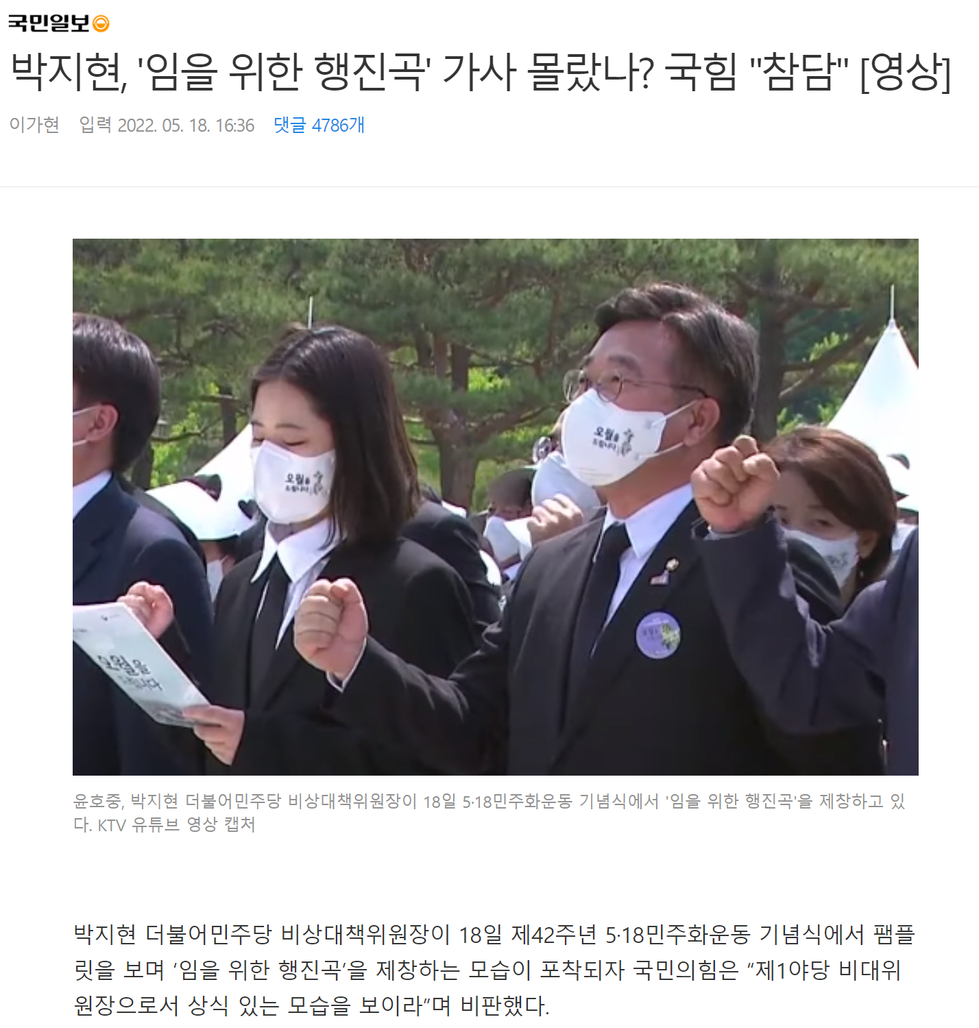 하기사 애시당초 20대 핏덩이를 대표로 세운게 문제지 20대가 임을위한행진곡 모르는게 뭐 문제가 되나 그 20대가 민주당 대표인게 문제지
