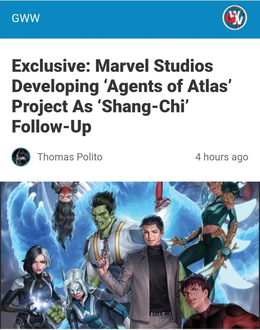 GWW에 의하면 마블이 샹치에서 이어지는 시리즈로 에이전트 오브 아틀라스를 개발 중이다.