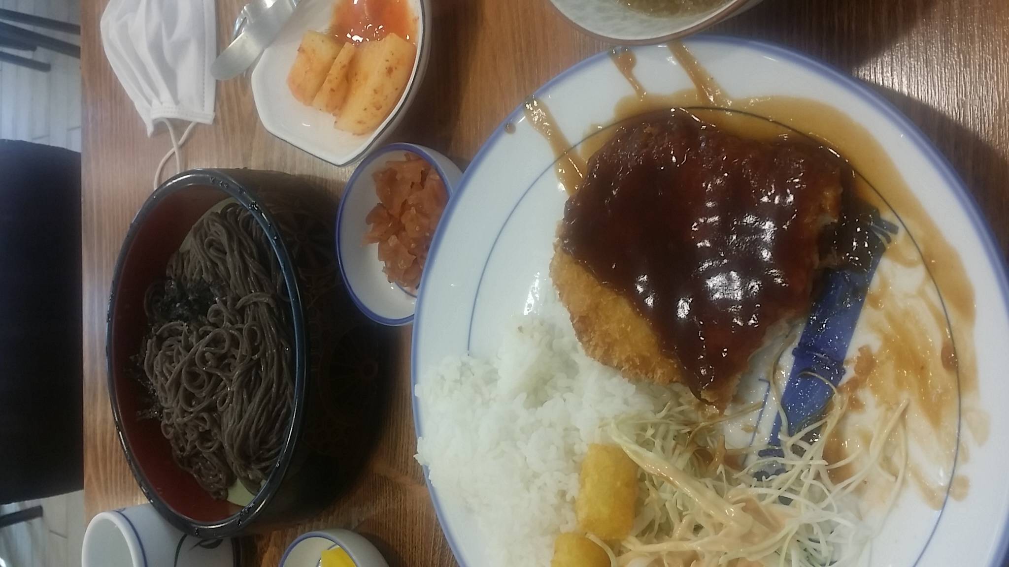 돈까스에 냉모밀되시겄습니다 사실 돈까스는 1/3먹은 상태입니다 먹다가 생각나서찍은거라