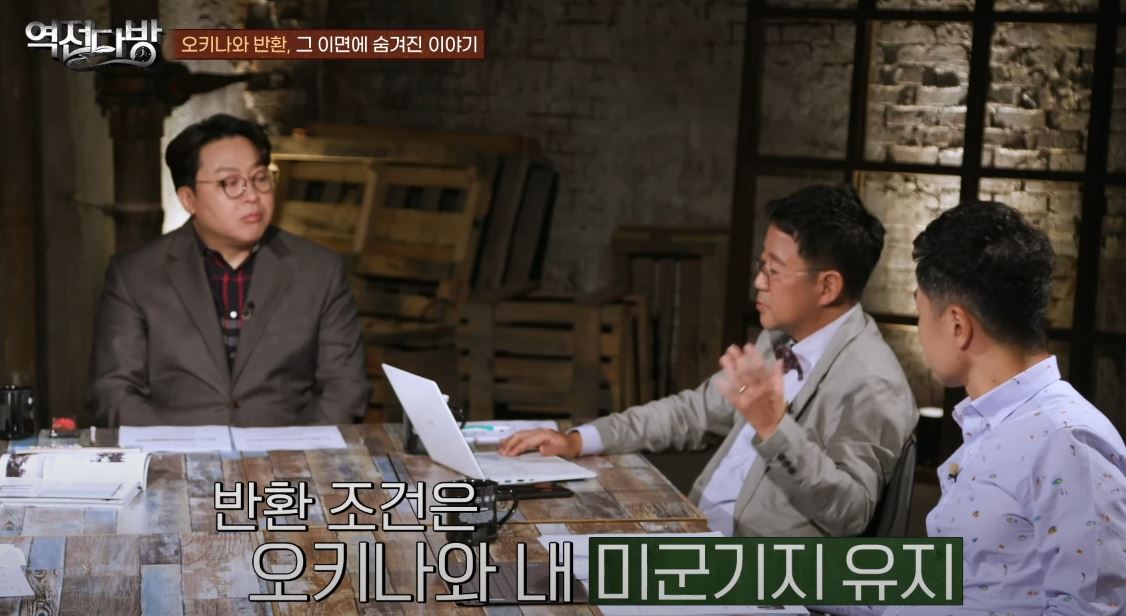 그래서 오키나와는 반환하지만 그 위치는 너무 중요하기 때문에 미군기지는 유지하기로 함