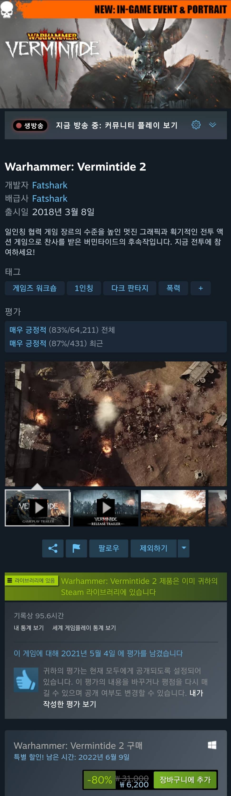 이번 워해머 이벤트로 워해머 세계관 게임은 다 할인하더라
