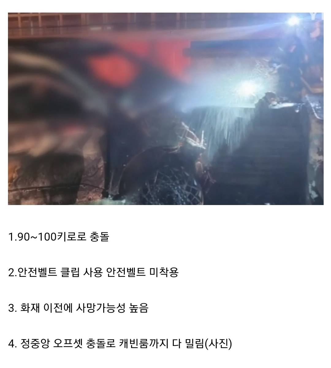 안전벨트를 제대로 맸으면 살았을지 그래도 죽었을지를 얘기해야지 100키로로 박으면 다 죽어도 싼가