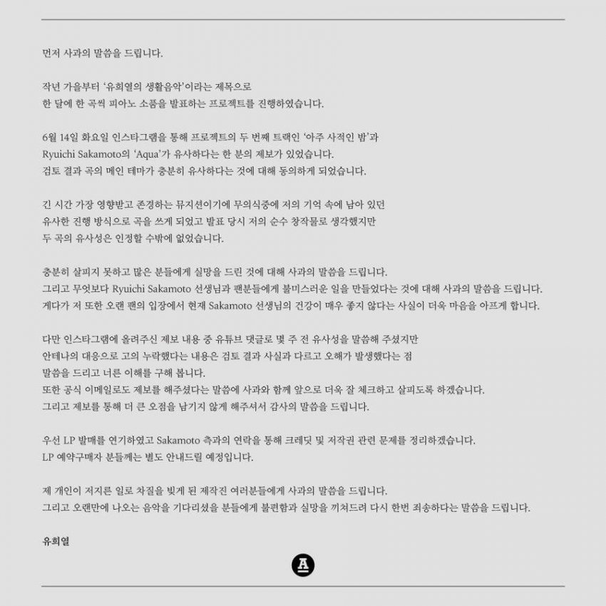 들어보진 않았는데 사과 글은 깔끔한 것 같음