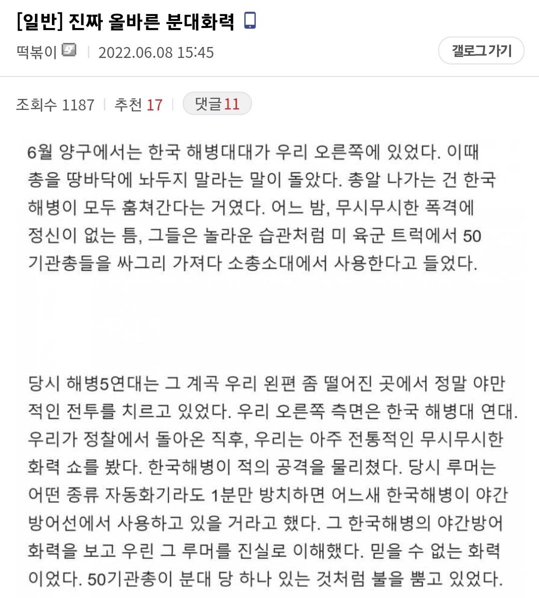 군갤에서 인해전술 떡밥이 돌더라