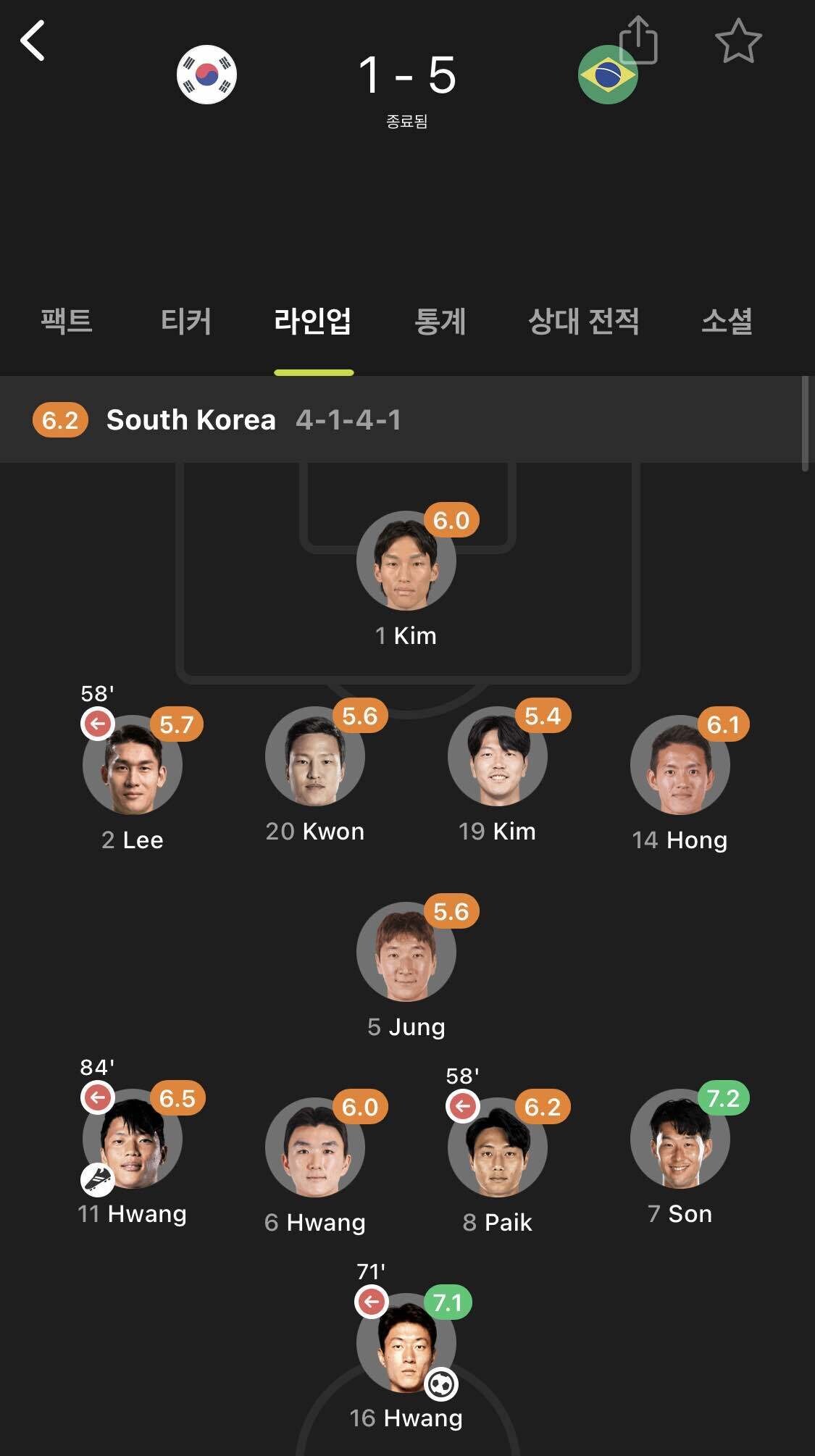 내가 분석해보니까 국대에 유럽 리그에서 잘 뛰는 새끼들이 포지션별로 몇명 있어야