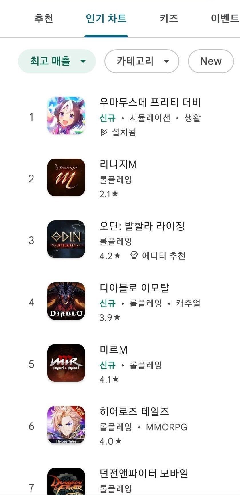 방금 구글스토어 켜봣는데 이렇게 안뜨더라