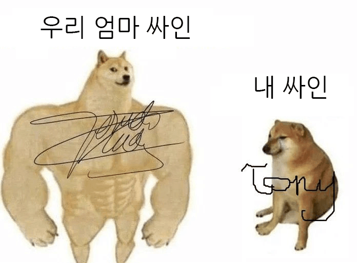 국딩때 만든 싸인 평생 쓰는데 실제 결재할때 사인하려니 내 이름인줄 알기가 어려워서 결국 그냥 이름 날림으로 쓰는걸로 바꿈