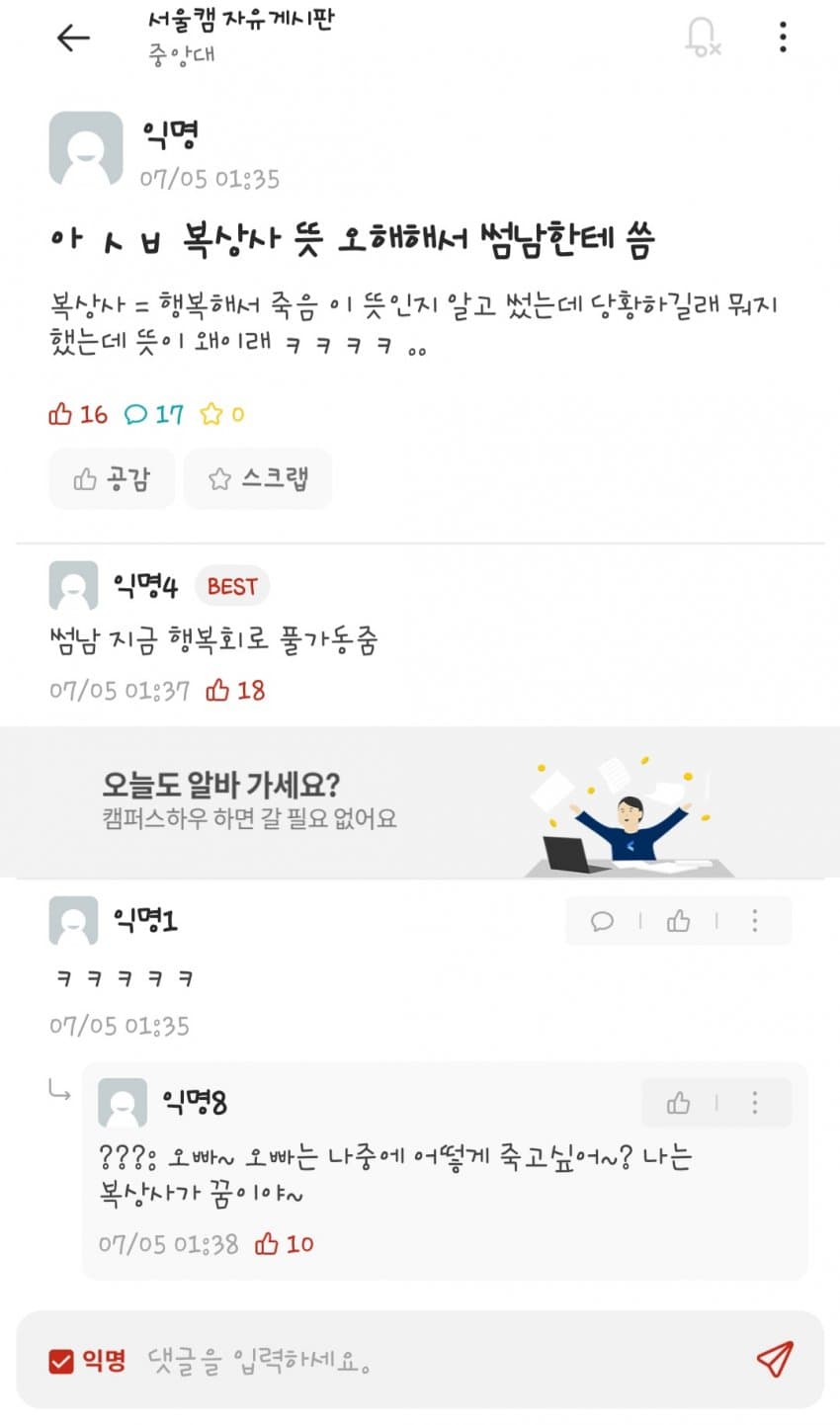 근데 사실 한자 알아도 유추하는게 애매하지않냐 난 복상사 중딩때 무협지 보고 뭔 뜻인지 깨달음 주인공의 음양합일을 가장한 흡성공으로 말라죽은 복상사를 깨우쳤기 떄문