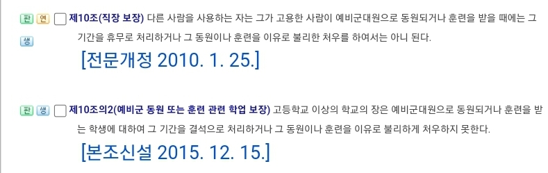 다른 사람을 사용하는 자는 그가 고용한 사람이 예비군대원으로 동원되거나 훈련을 받을 때에는 그 기간을 휴무로 처리하거나 그 동원이나 훈련을 이유로 불리한 처우를 하여서는 아니 된다.