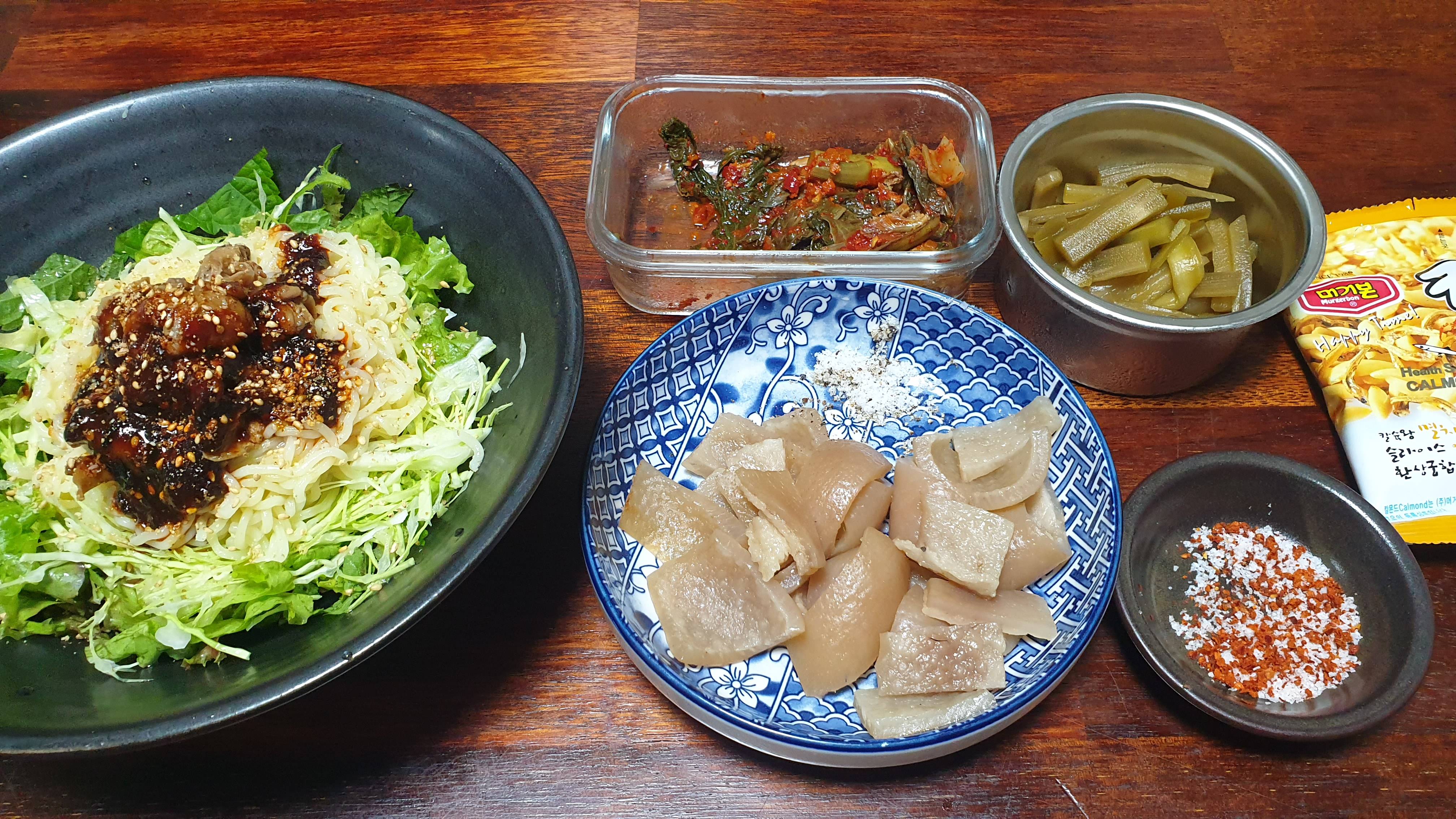 어제남은 골뱅이 무치고 껍데기 삶은거 수육으로