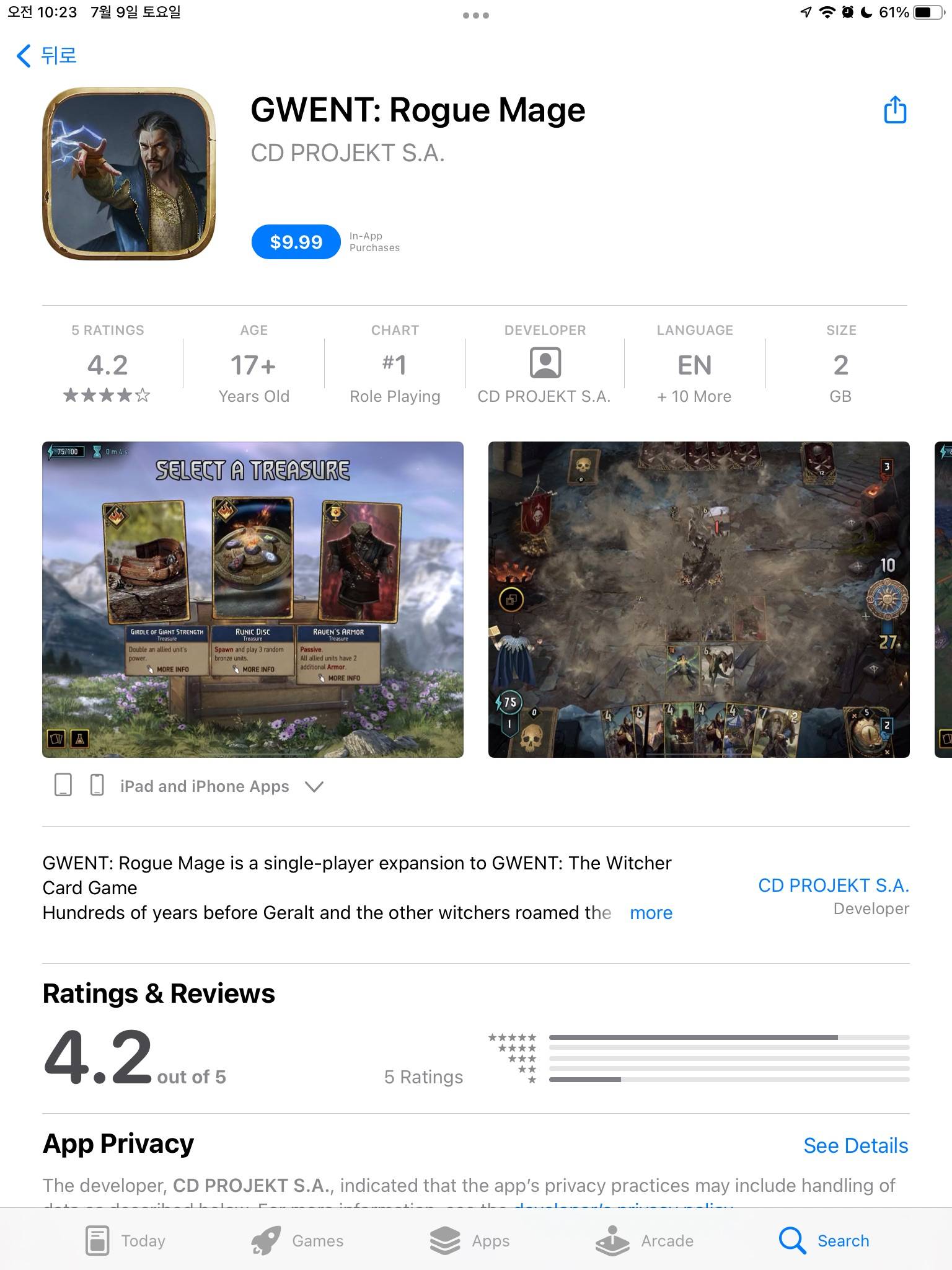 IGN can reveal that The Witcher developer CD Projekt Red will release Gwent: Rogue Mage - a single-player deckbuilding roguelike - tomorrow, July 7, for PC, iOS, and Android.