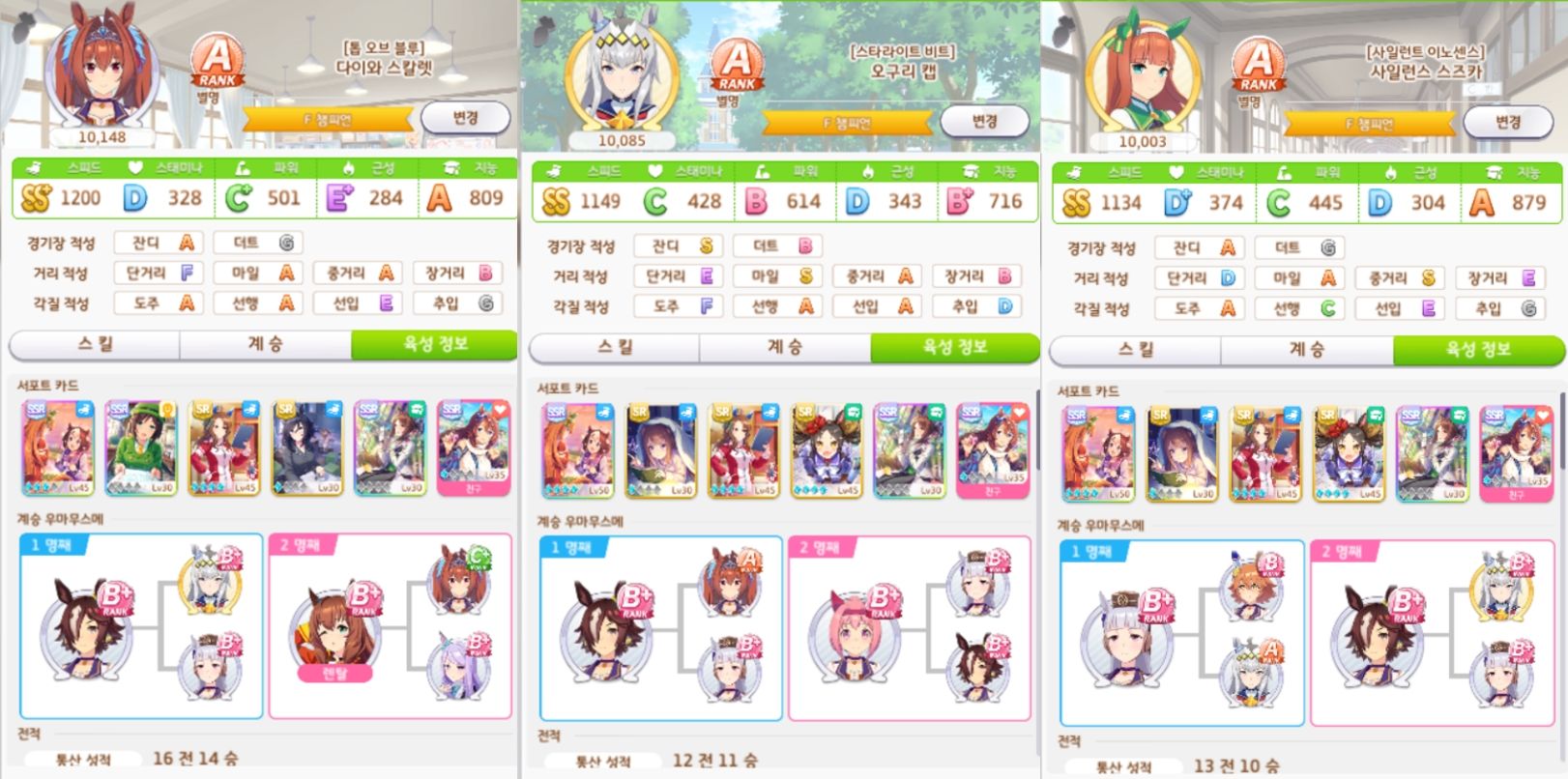 처음으로 레전드에 육성 전체 전승 달성 근데 이래도 A랭크는 안나오네 A어케 찍냐.. 무과금이라 무리인건가