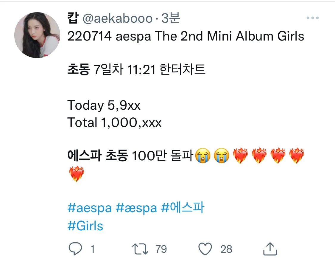 금일 11시 20분 한터차트 기준 100만장 돌파