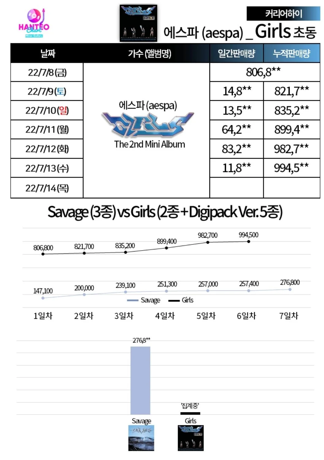 - 써클(舊 가온) 차트 기준 142만장 돌파.
