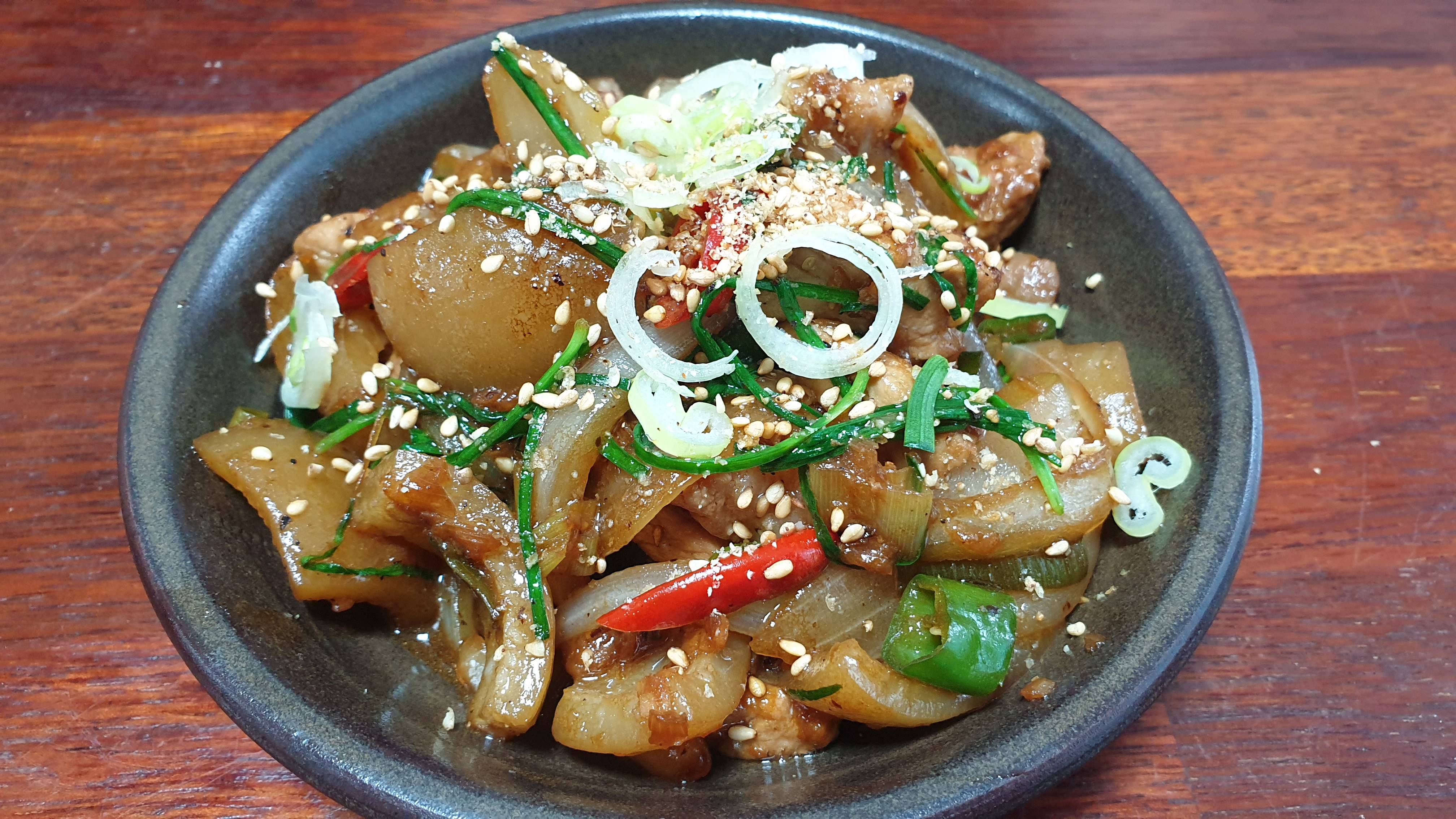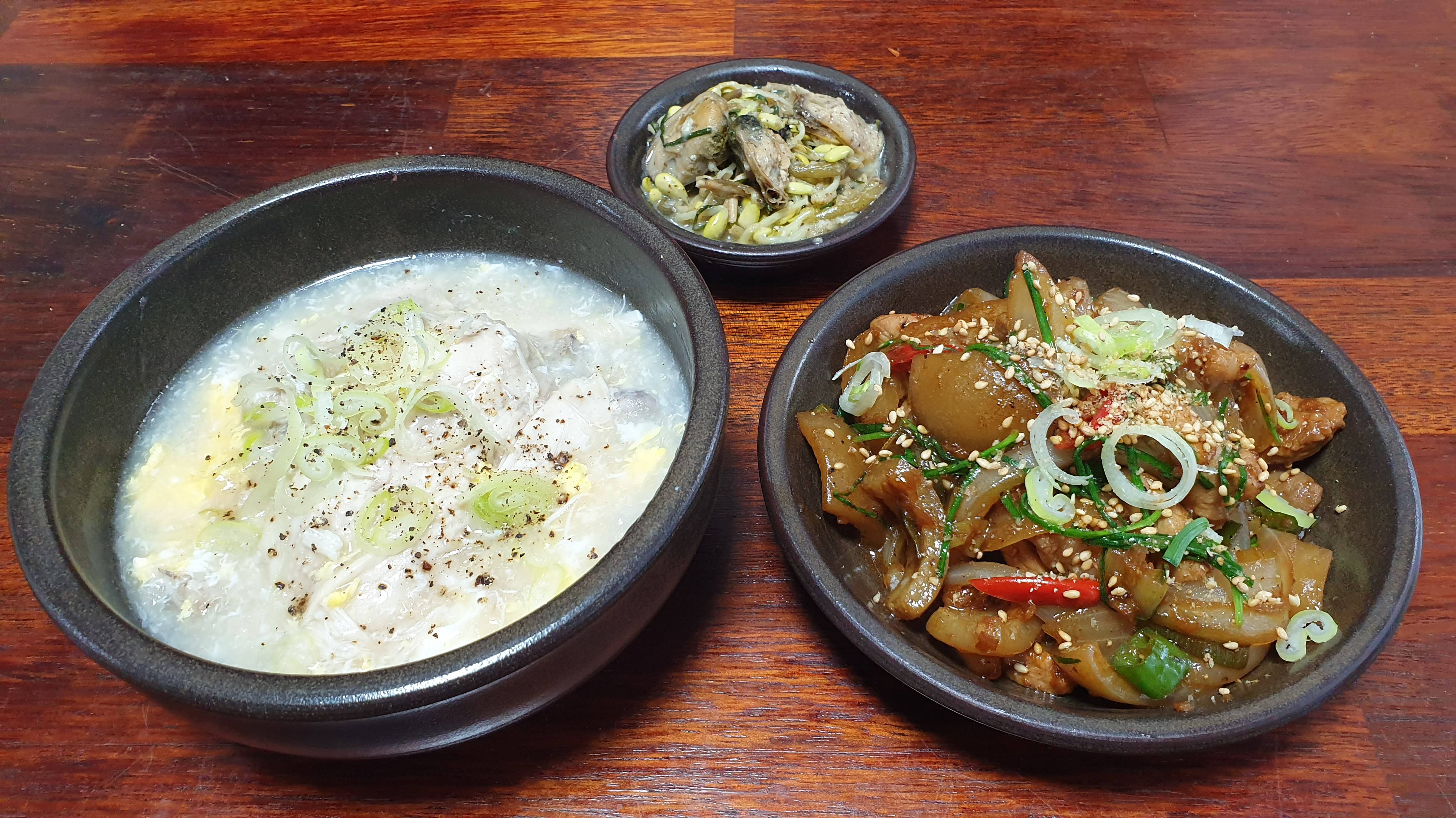 앞다리 껍질 간장볶음이랑 닭죽 해물범벅