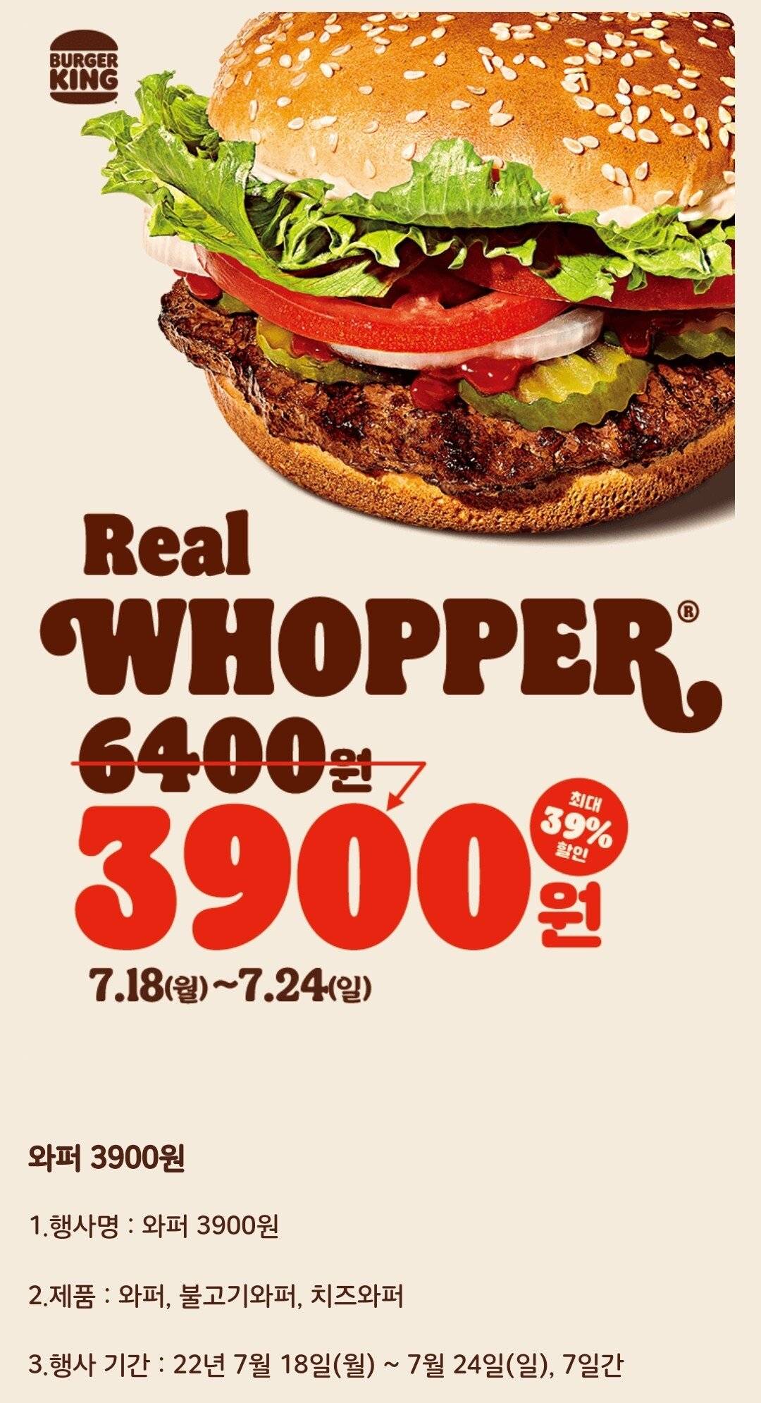 버거킹행사 와퍼상품이 사실상 밖에서 먹을수있는 가장 저렴한 점심이 된거. 음료도 아메리카노같은거시키면 5000-6000선에서 한끼식사가능.