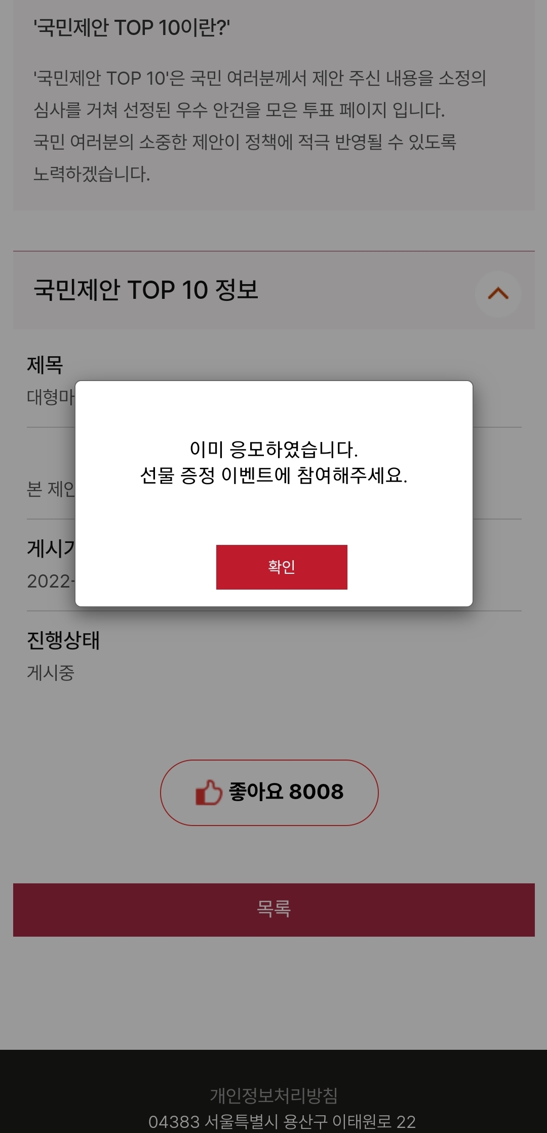 투표가 아니고 그냥 좋아요 누르는거라 원하는게 있으면 각각 항목별로 들어가서 누르면 끝