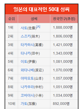 한국으로 치면 장씨 수준으로 흔한 수준