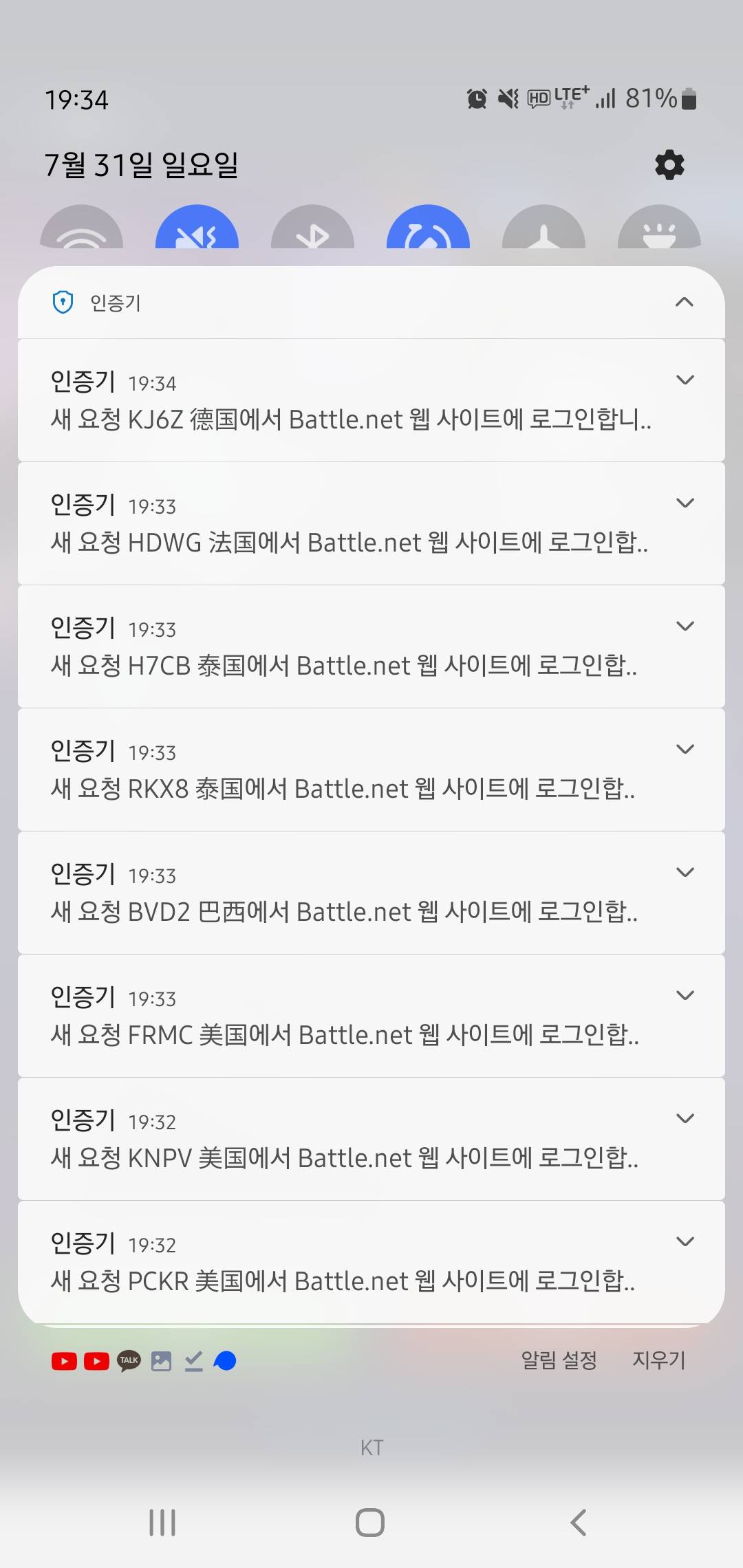계정 털린거라 비번 바꿔 쟤네가 계속 바꾸면 이멜도 털린거임ㅋ