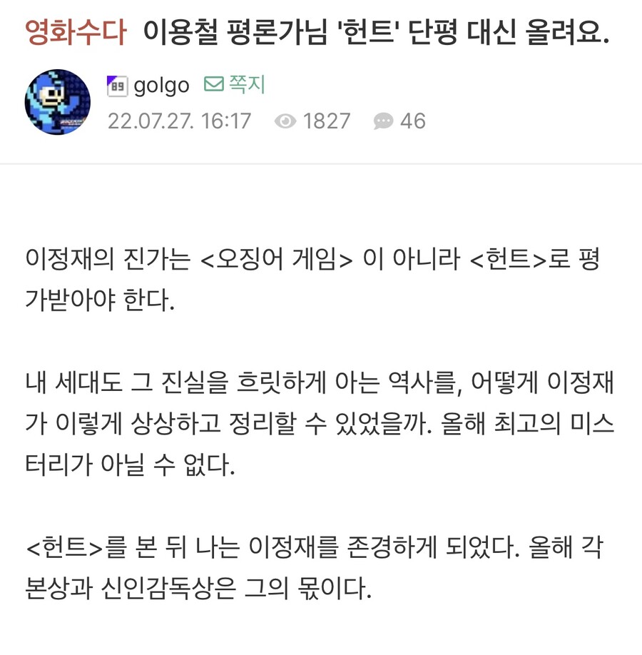 평론가새끼들 진짜 영알못임 특히 방화는 평가 진짜 걸러라 먹고 살려고 그러는거라고 생각하고 잠재의식에도 두지말것