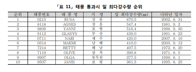 대한민국 일일 강수량 역대 최고