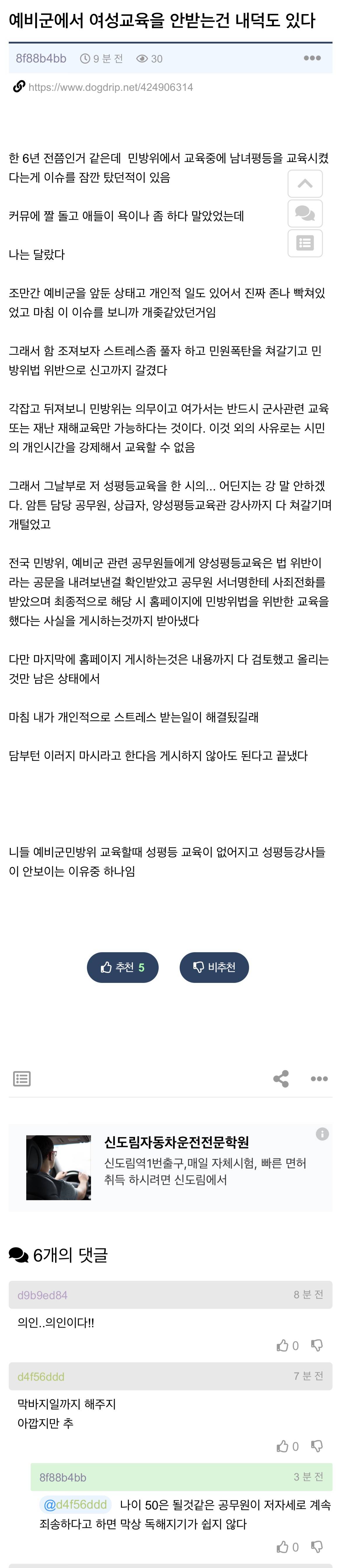 민방위 1년차때부터 성평등 관한거 단 한번도 교육한적없었는데 흠..