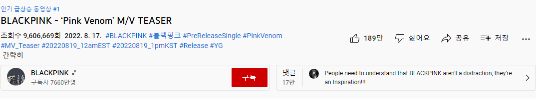 공개 12시간도 안 되어서 천만뷰 찍을 듯?