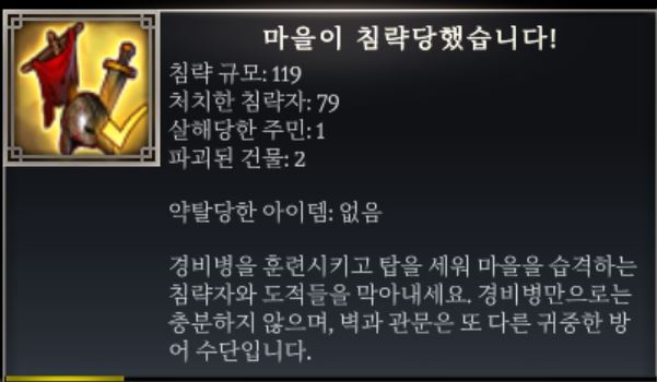 성문 2개만 박살나고 영지 외곽으로 사냥나갔던 영지민 한명만 죽음