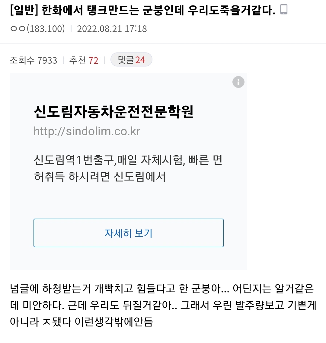 한화 협력업체 군붕이 반응ㅋㅋㅋ