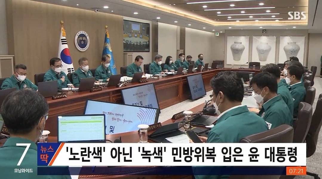 아 이거 뭔 단체복인가 했더니 민방위복 색깔을 바꾼거? 노란색이 기본아닌가 초록색은 작업복같은데