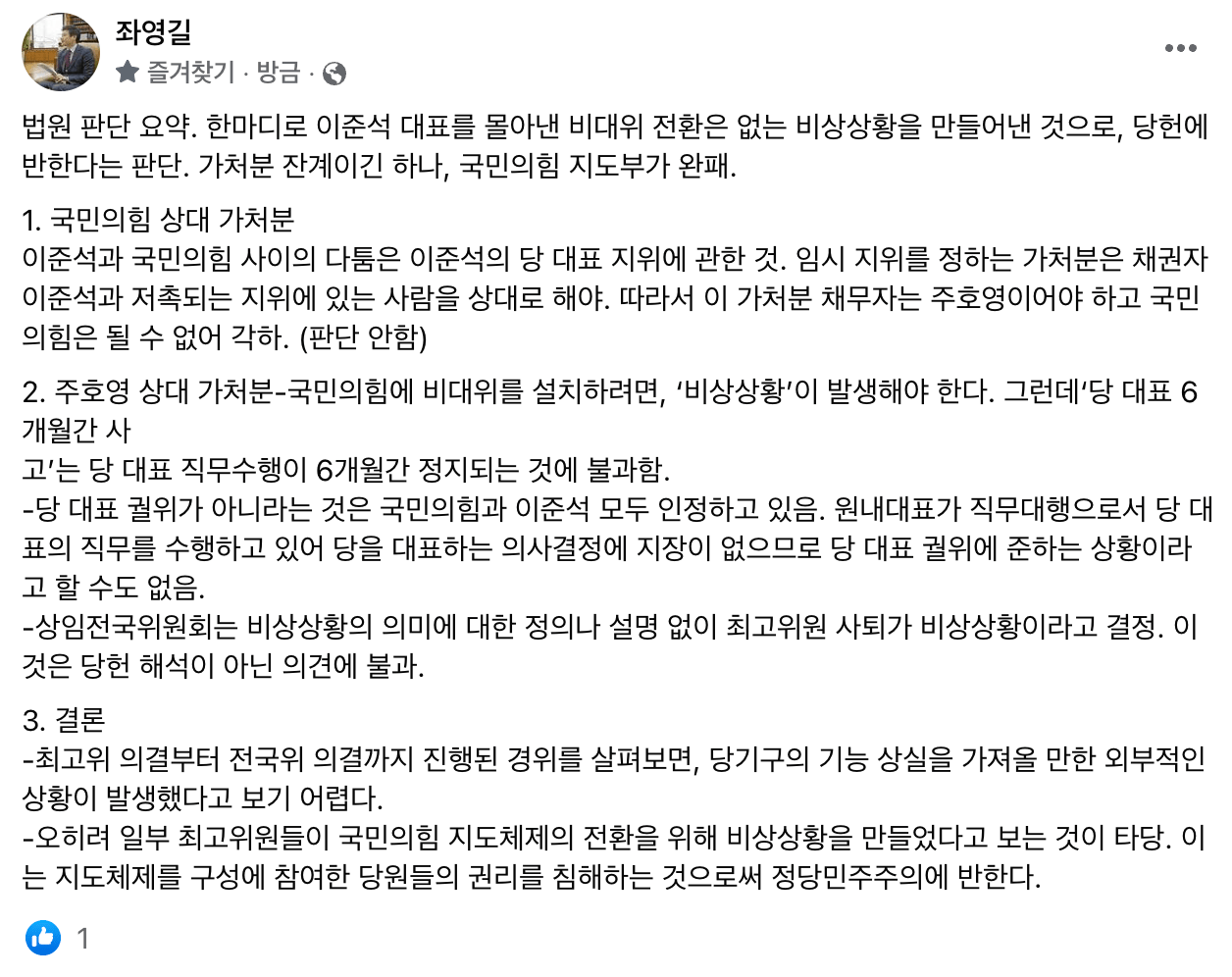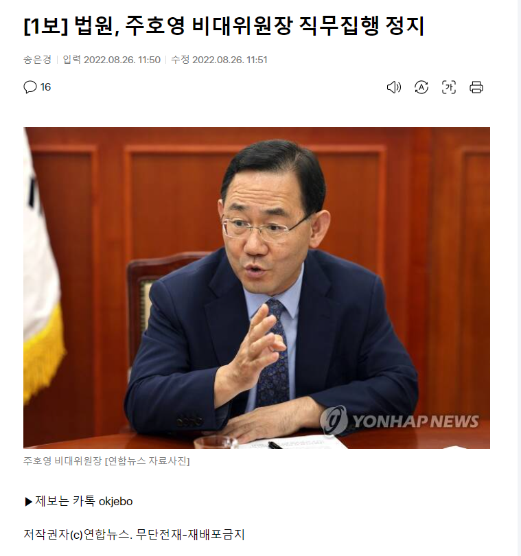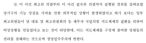 이게 핵심임. 실제로도 핵심임. 더러운 새끼들 준석이 6개월 정지도 어이없지만 거기까진 판단의 영역으로 인정한다 해도 그사이에 뜬금 비대위 전환해서 당원투표로 선출된 당대표 축출하는건 민주주의 자체를 무시하는거지