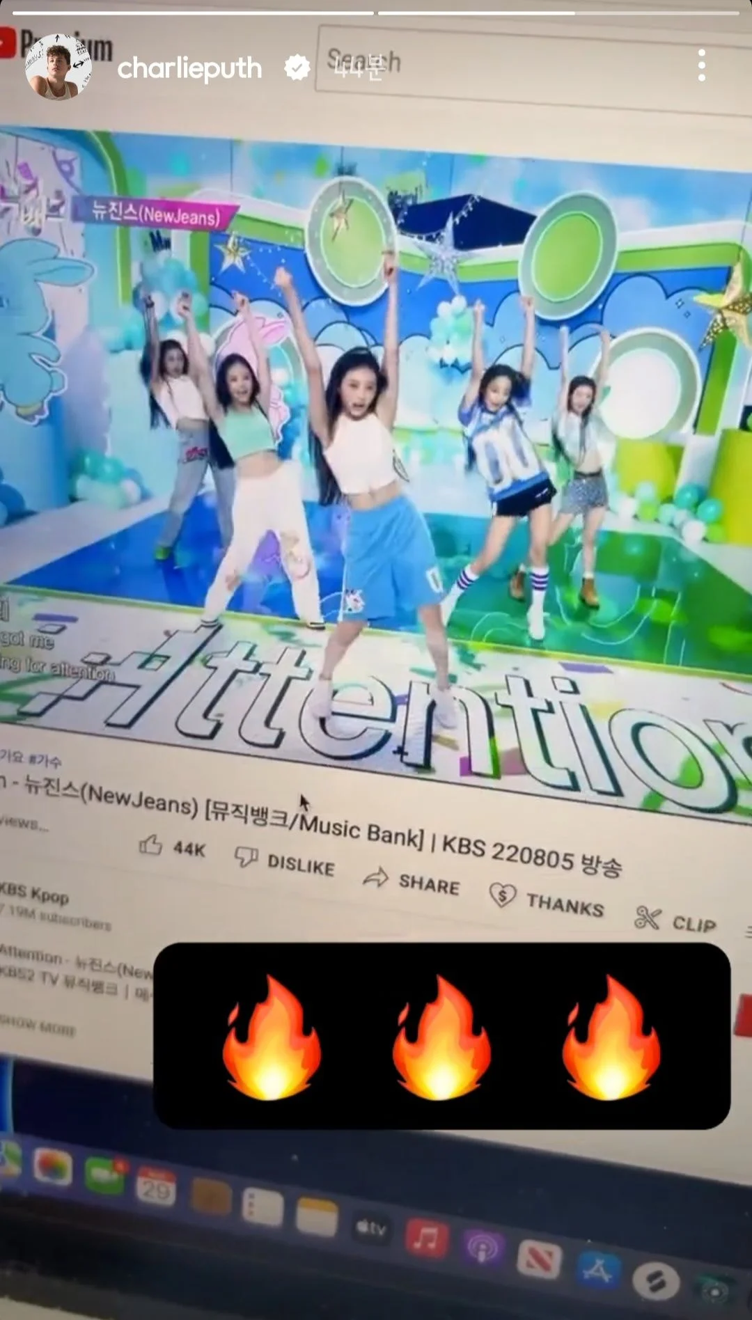 뉴진스 뮤뱅 무대 보고있는 찰리 푸스