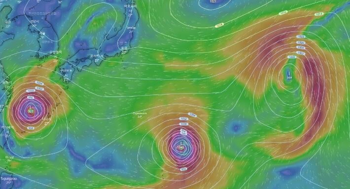 현재 발생 가능한 태풍이 3개네