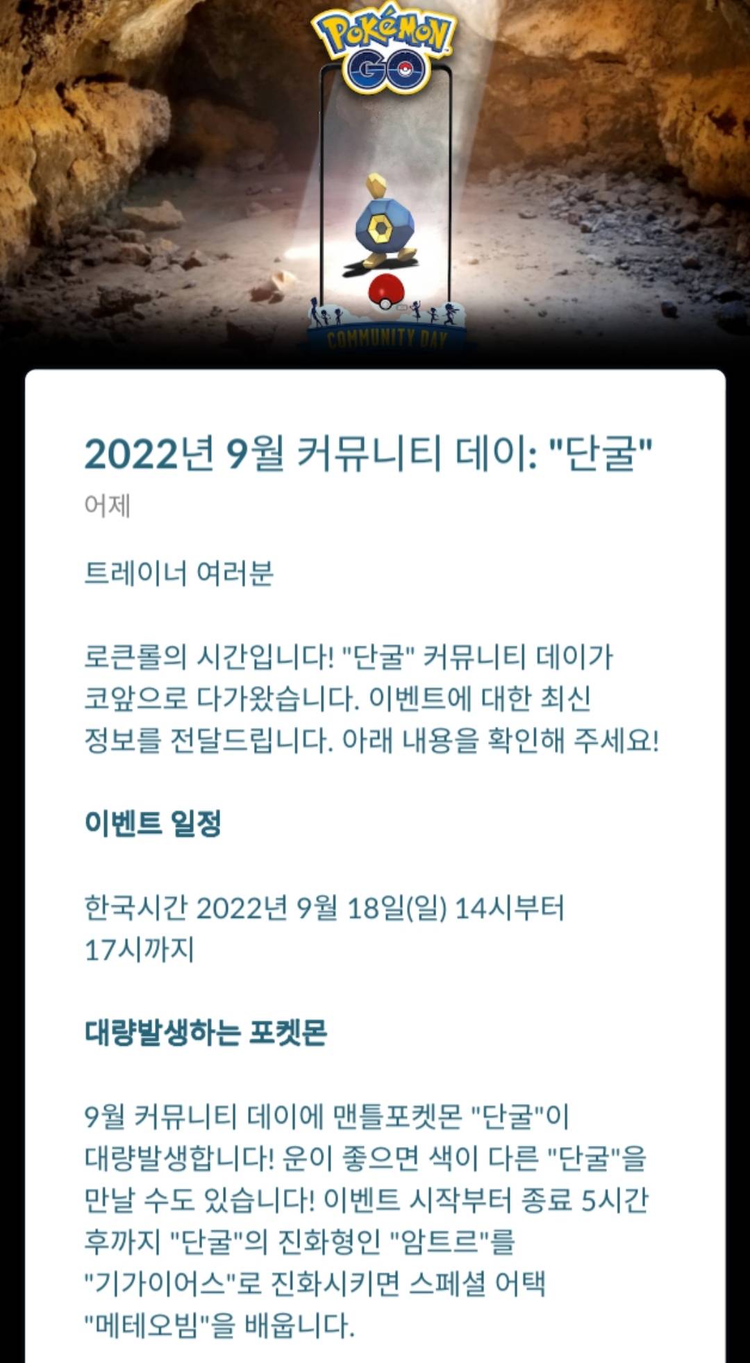 한달에 한번 커뮤니티데이 이벤트 하는 날