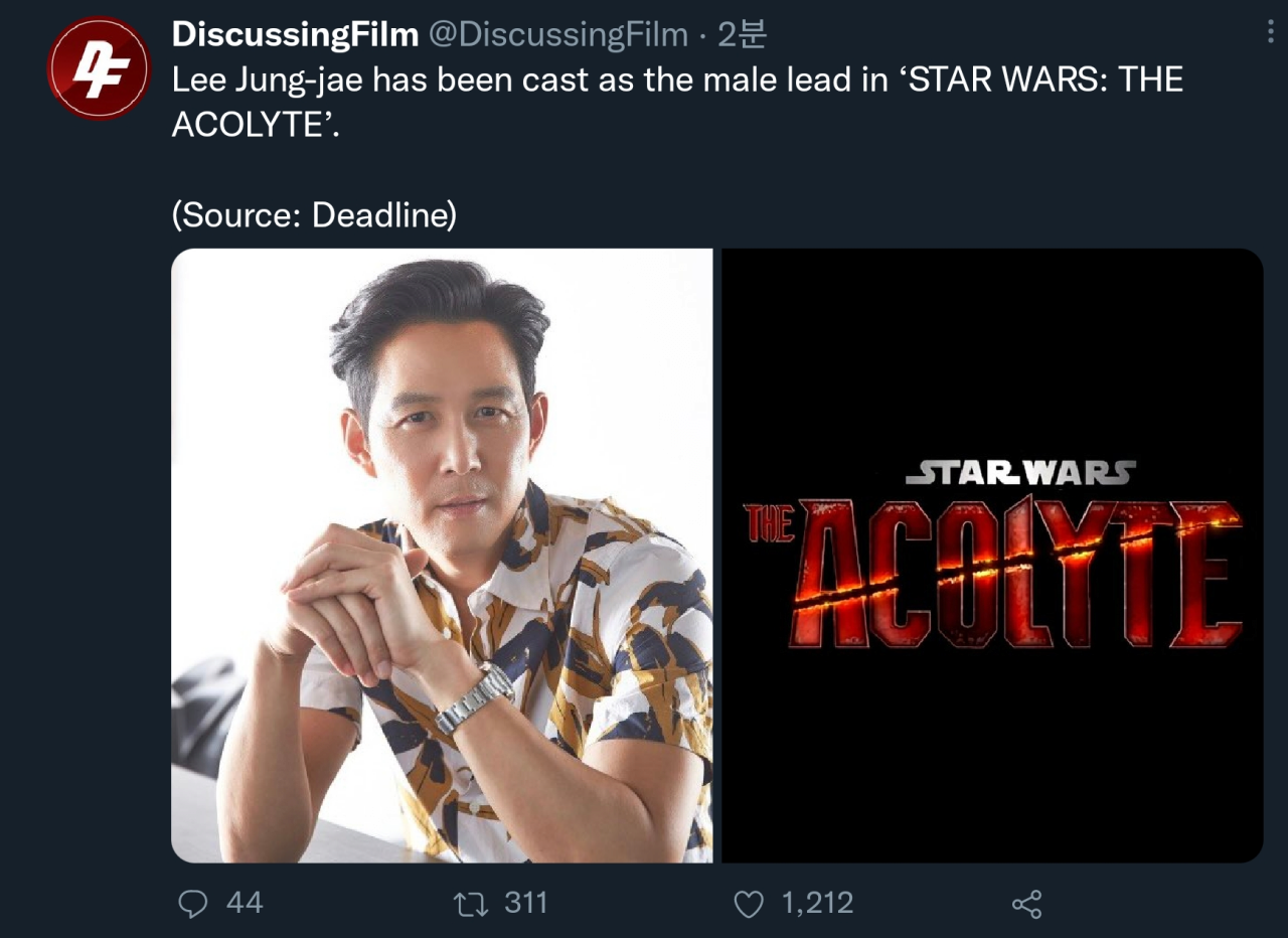이정재 스타워즈 애콜라이트 주인공 발탁