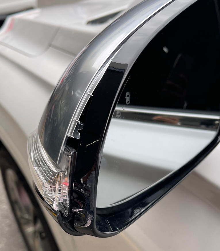 주차장 기둥에다가 백미러 스치듯 갈았는데 각도가 안 좋았는지 옆이 완전히 들렸음.