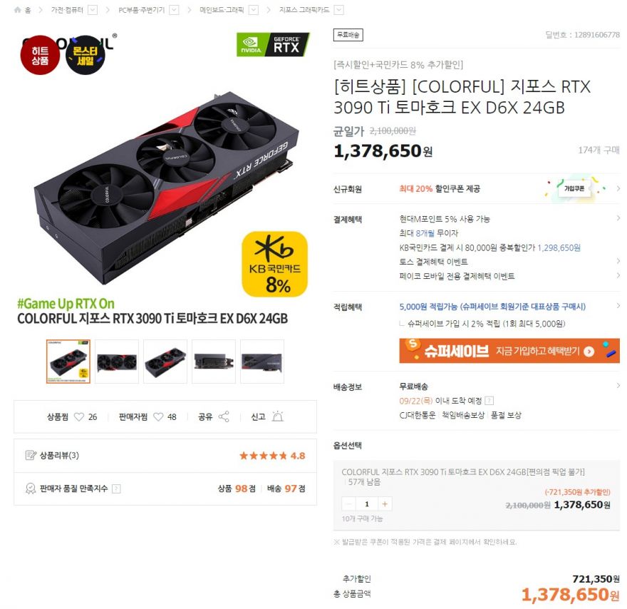 3090ti 신품이 130? 네이버는 싸도 180대인데