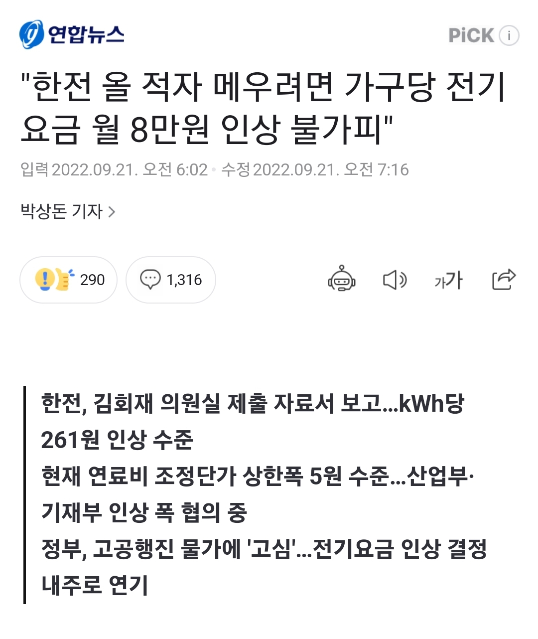 에너지가격 말고 또 인상요인 있나? 나눠내냐 몰아서 내냐의 차이아님?