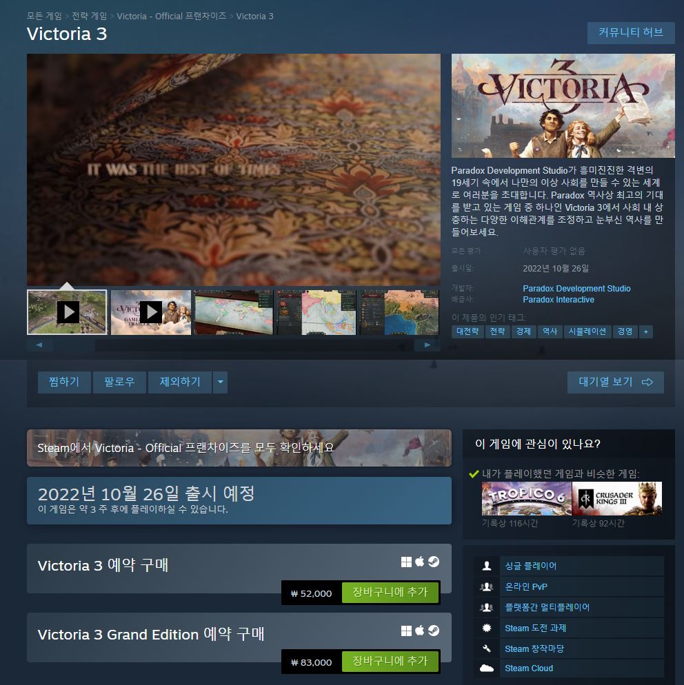 ㅇㅋ 스타오션 버리고 빅토리아3에 매진한다