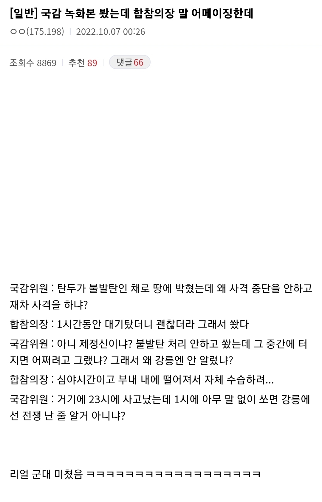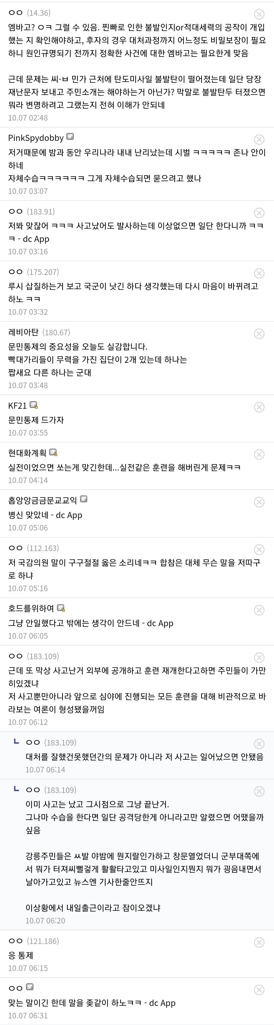 안전 문자라도 돌리고 쏘던지 군부대 불나고 있는부분은 상황설명 하고 쏴야제...