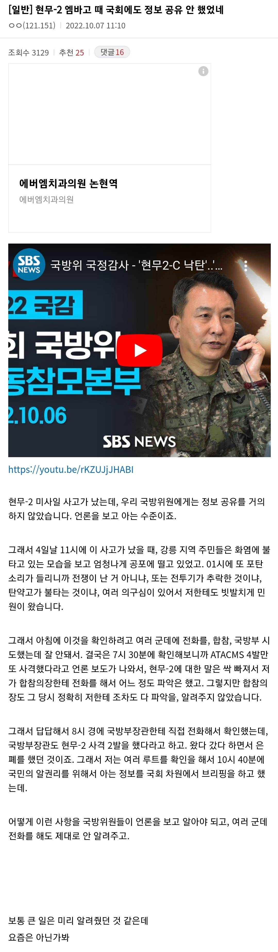 엠바고도 어느 정도껏이지 니네 집 뒷산에 뭐가 떨어져서 불 존나 나는데 뉴스기사나 안전문자 하나 없는데 한참 뒤에 니네집 앞산에서 미사일 날아가면 무슨 생각이 나겠냐? 그리고 국방위 의원들한테도 은폐하다 걸림 최소한 저 양반들한테는 알려줘야지