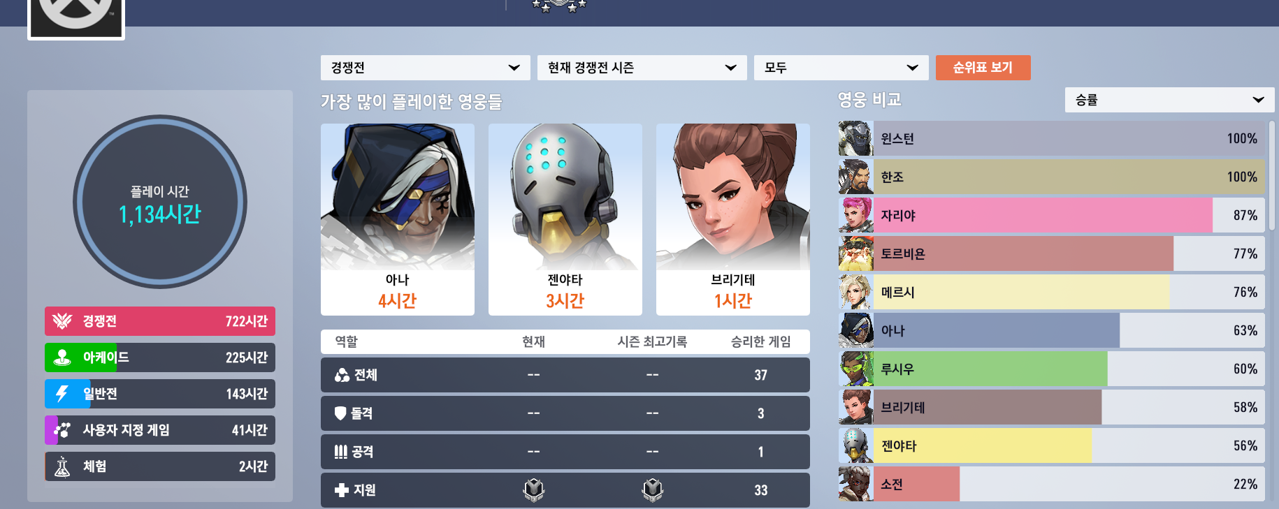 시간은 옵치1부터 누적임? 아님 정신과시간의방 다녀감?