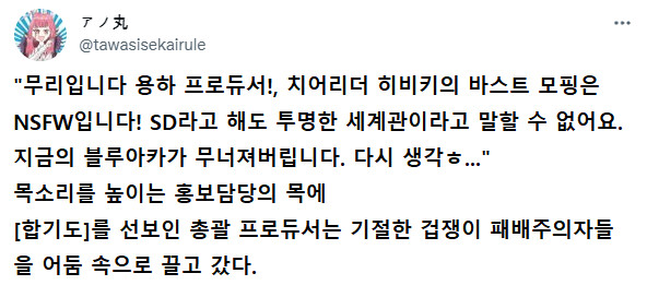 일본에서는 캐릭터 디자인에 반대하는 부하를 거리낌없이 청계천에 담그는 대머리 변태 PD가 되었던데