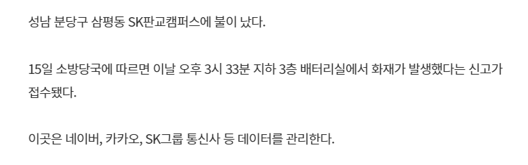 진짜 다른 서비스는 몰라도 카뱅이 주거래인 사람은 좆됐겠는데? 데이터센터 하나 불났다고 거래 막히면 그게 은행임? 카뱅 주식 또 떡락하겠는데?