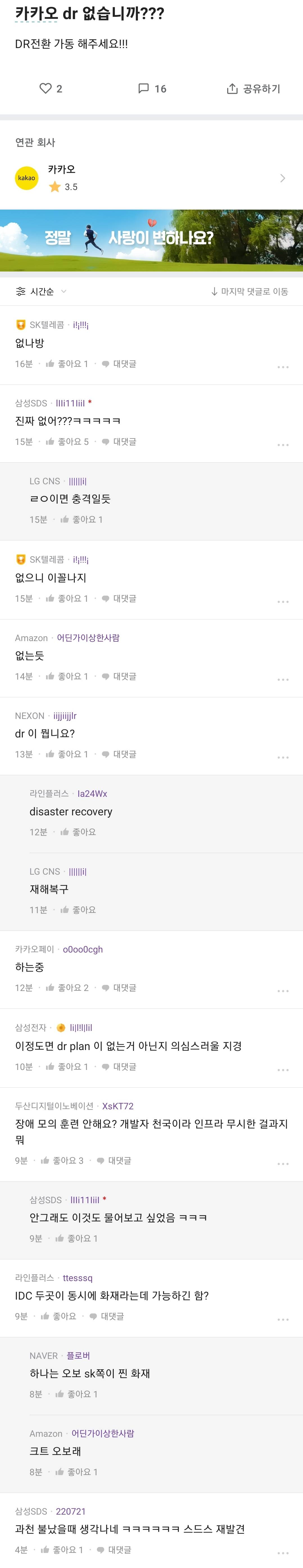 아 월욜부터 이걸 교훈삼아서 우리도 DR훈련하자고 그럴게 눈에 보인다 시발 DR훈련계획부터 실행까지 솝옹도 그럴것 같지 않아?ㅋㅋ