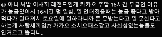 근데 좆카오는 지들 좆됐는데 복구 작업에 투입된 직원에게 무급??