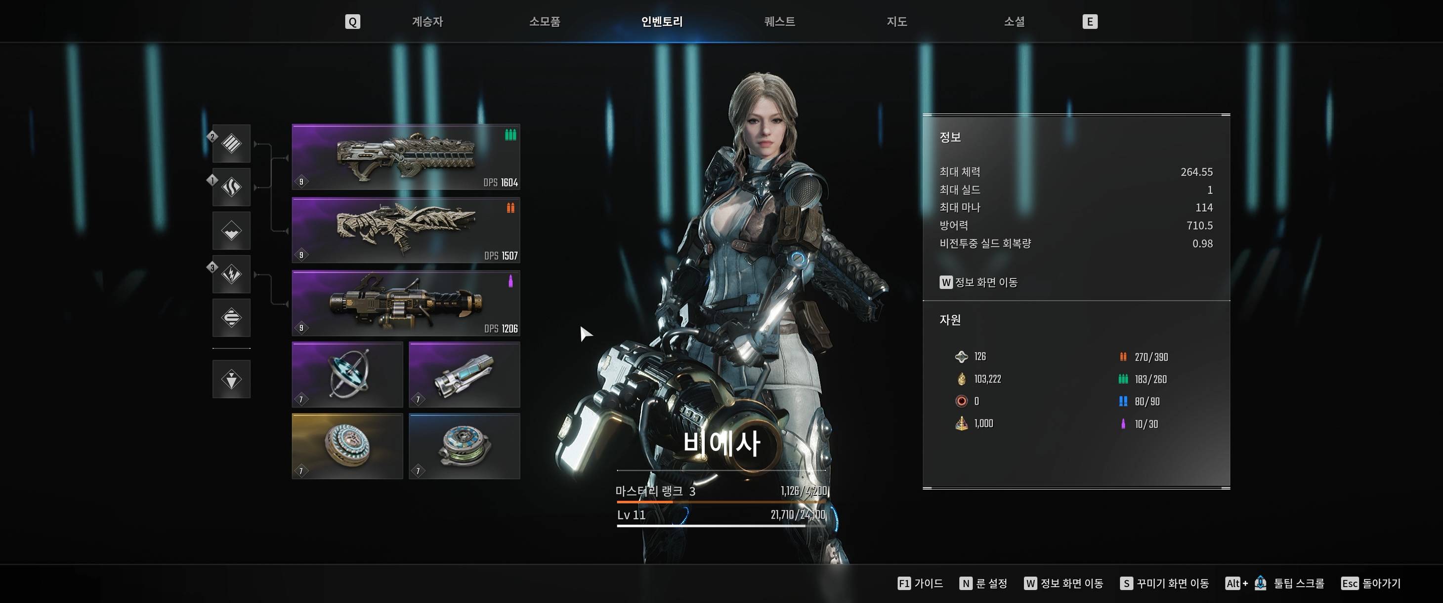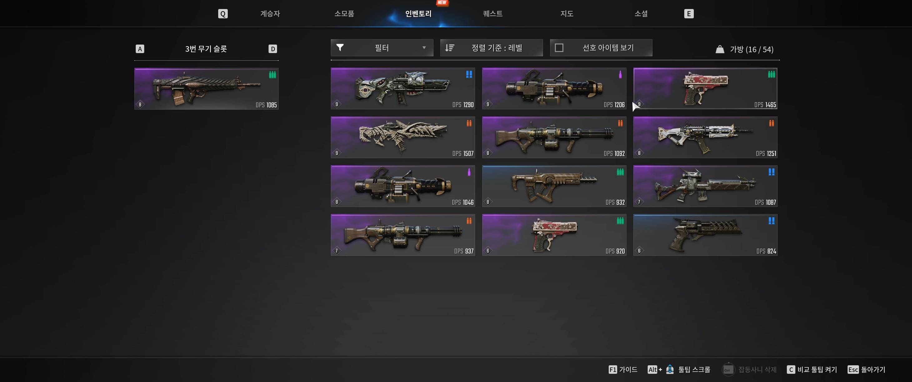 이런 식으로 무기는 무기종류, 탄종, 레벨과 DPS를 고려하면 됨