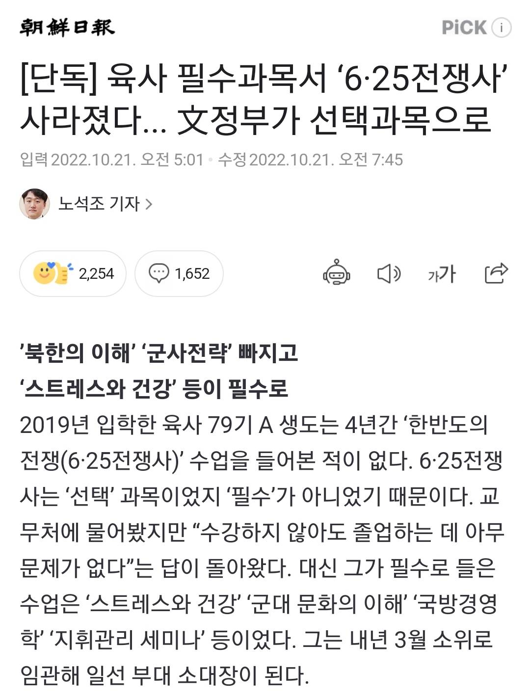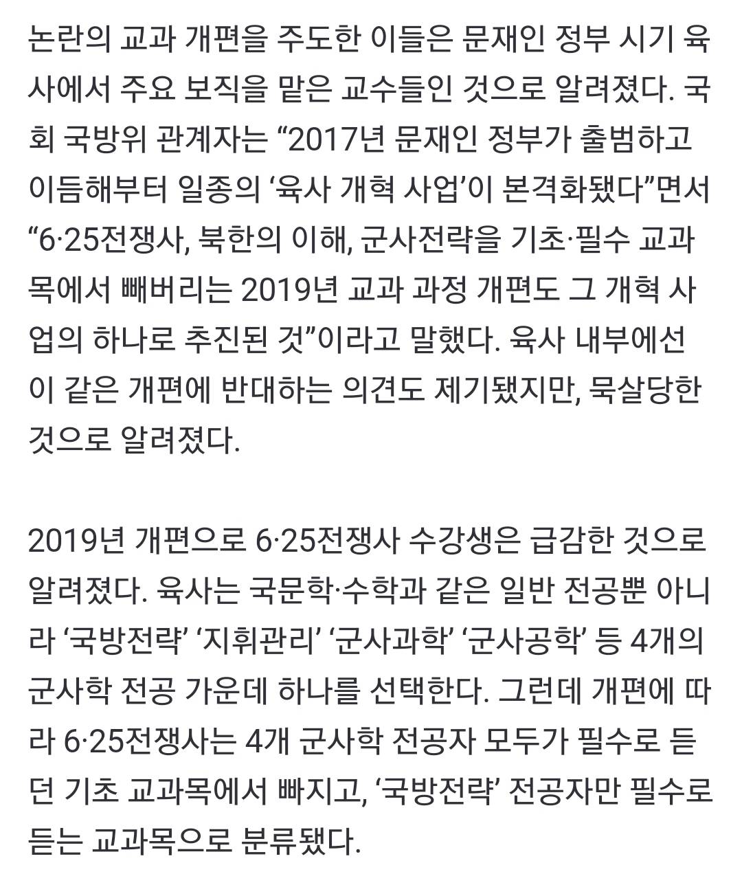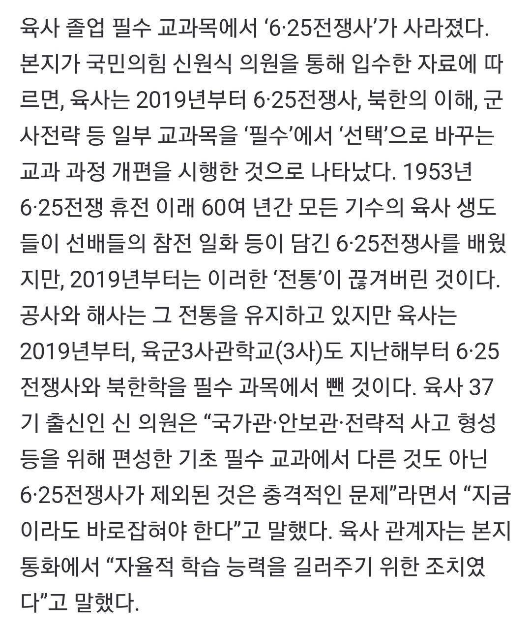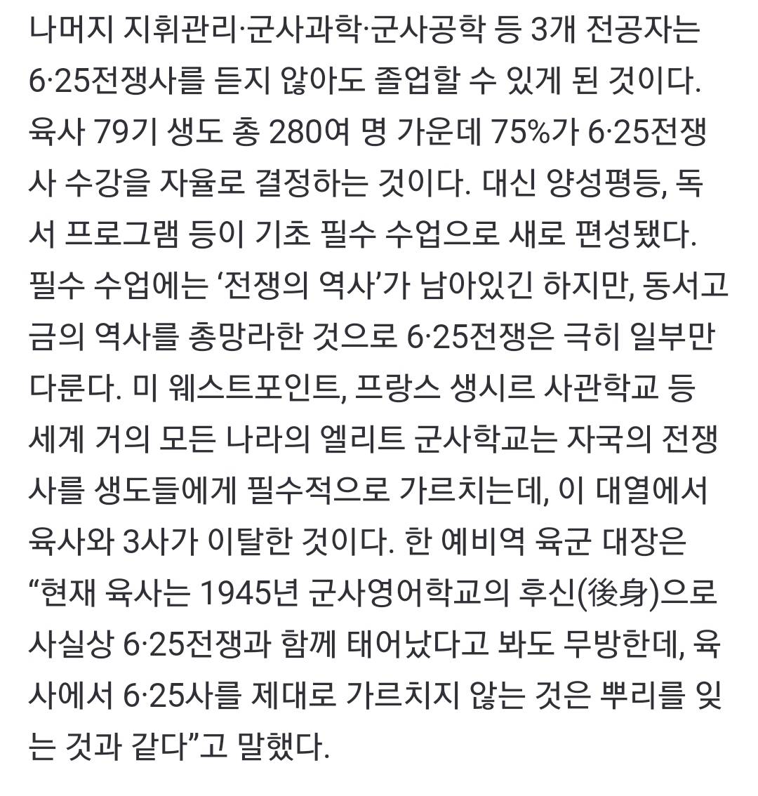 6.25전쟁사를 왜 별도 과목으로 사관학교에서