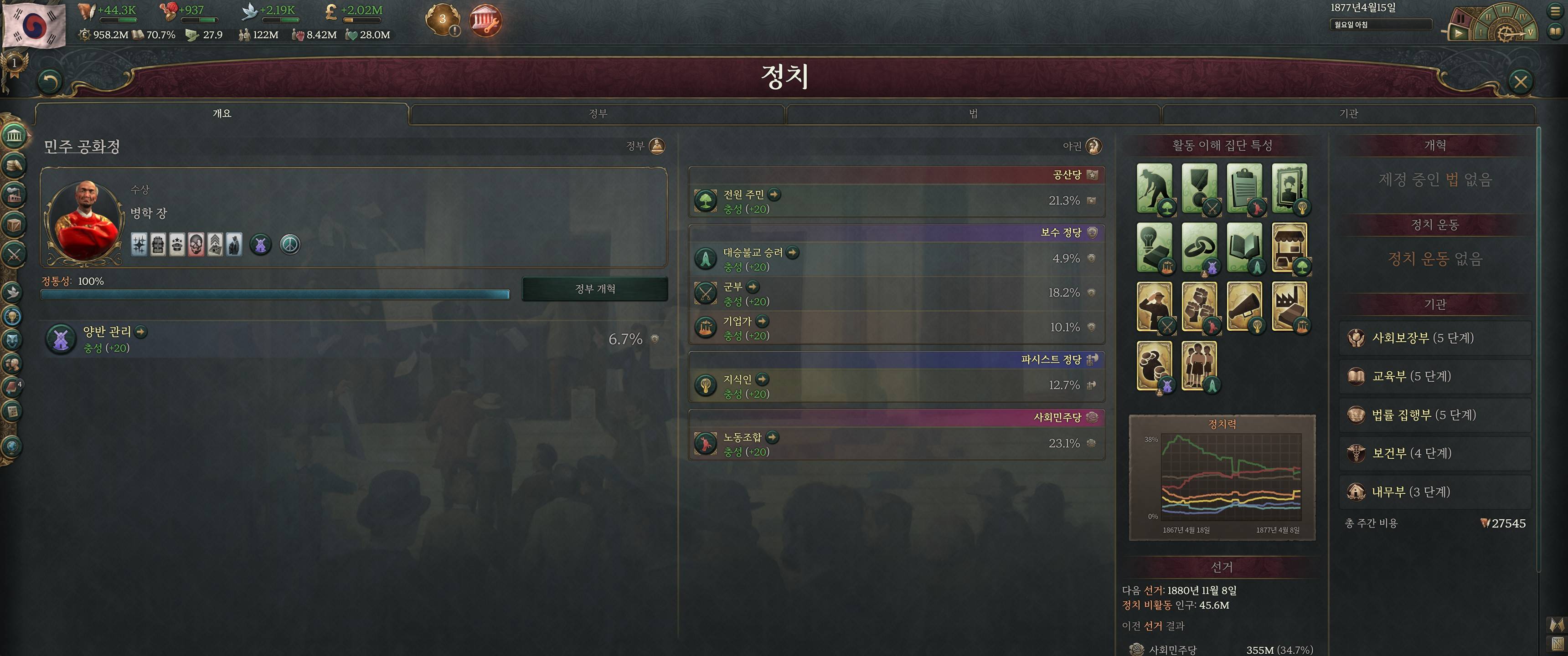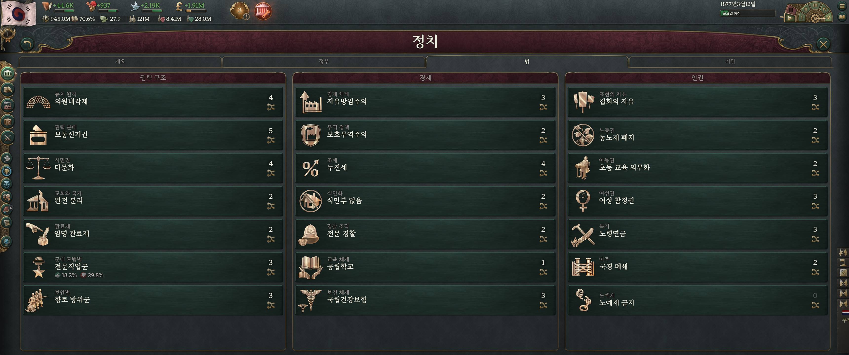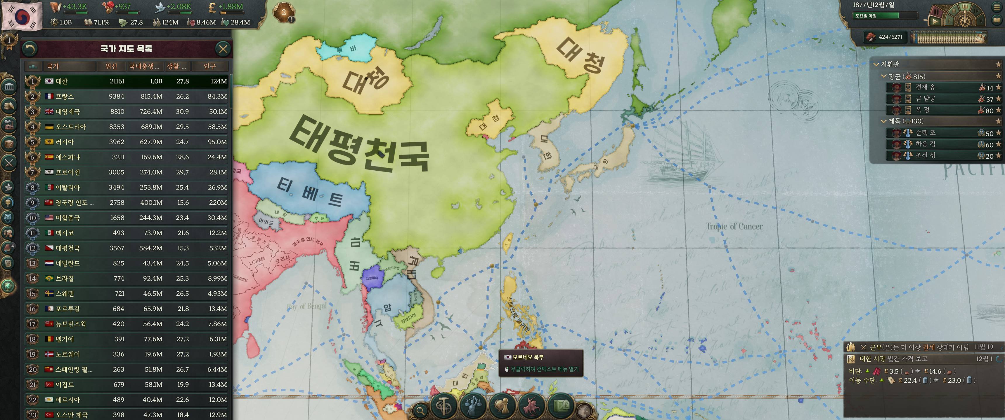 어제의 실패를 교훈 삼아 다시 플레이 했는데 조선으로 열강 먹음