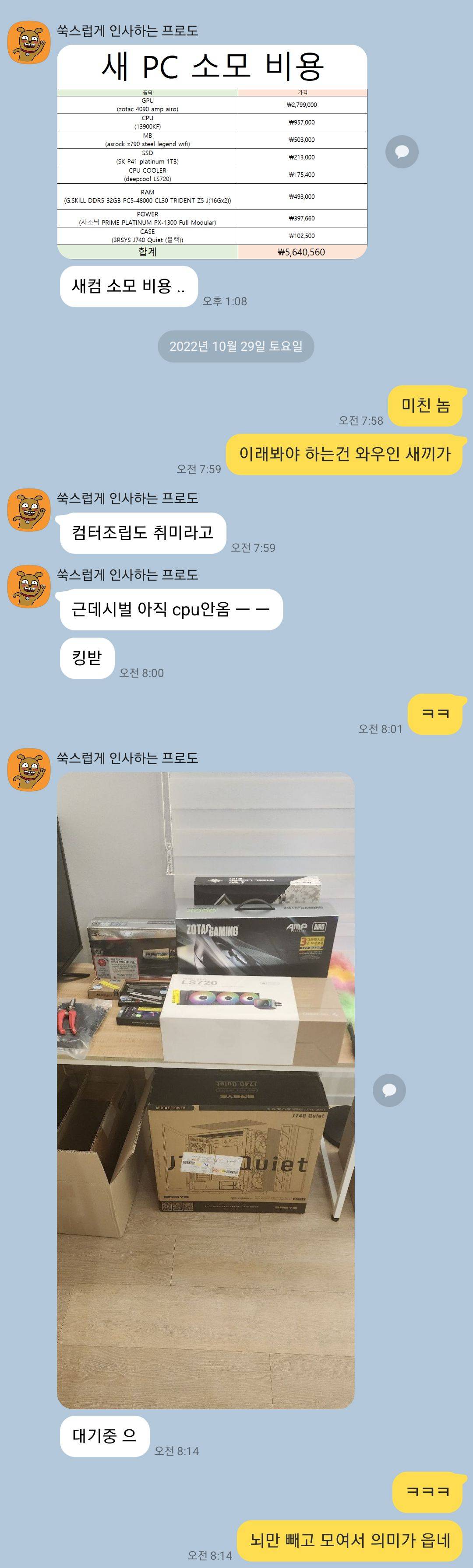 와 이렇게 보니 내가 얼마나 돈지랄 했는지 알겟네 잡다한거 가성비로 갔으면 4090 가고도 돈 남앗구만